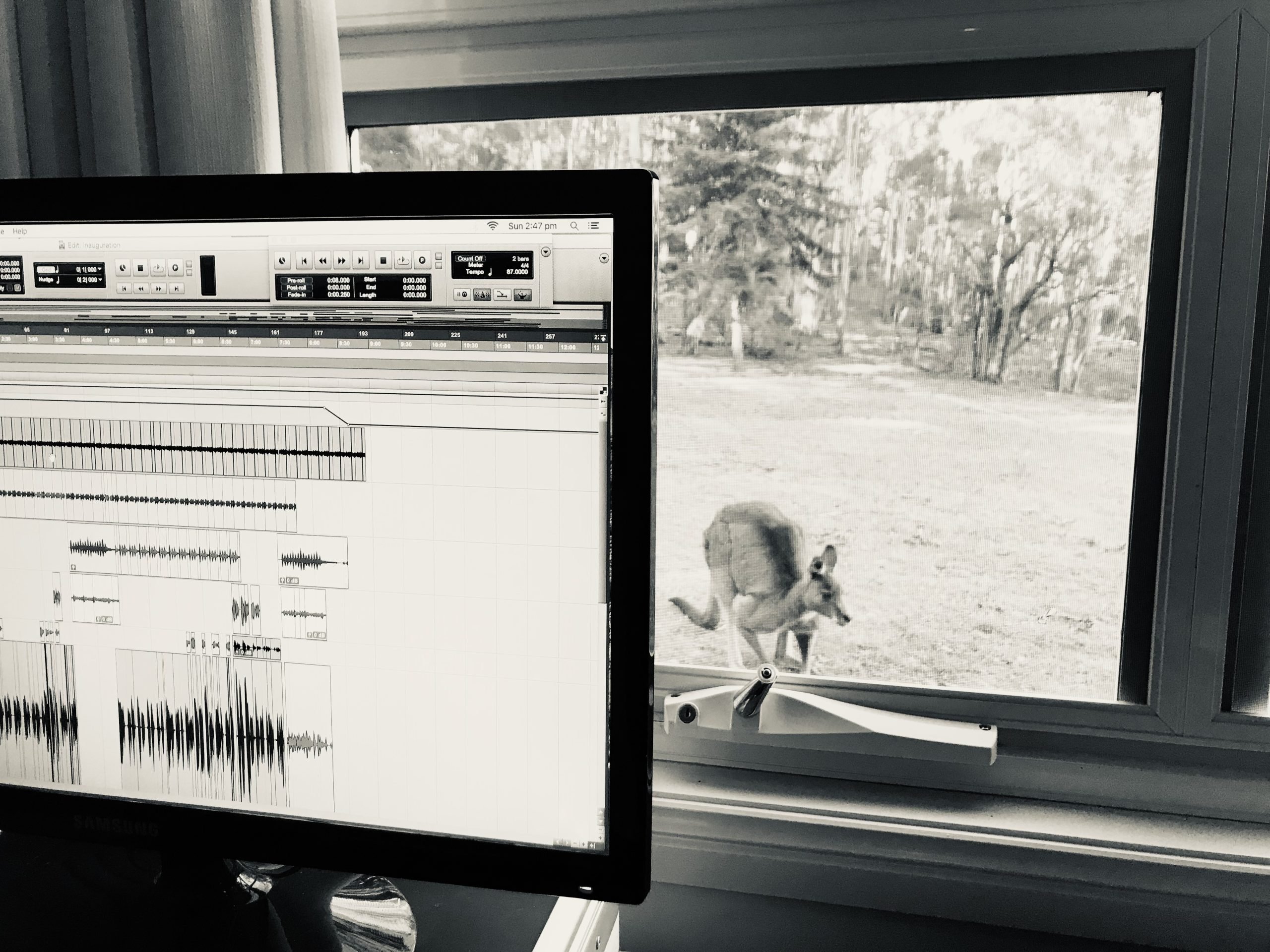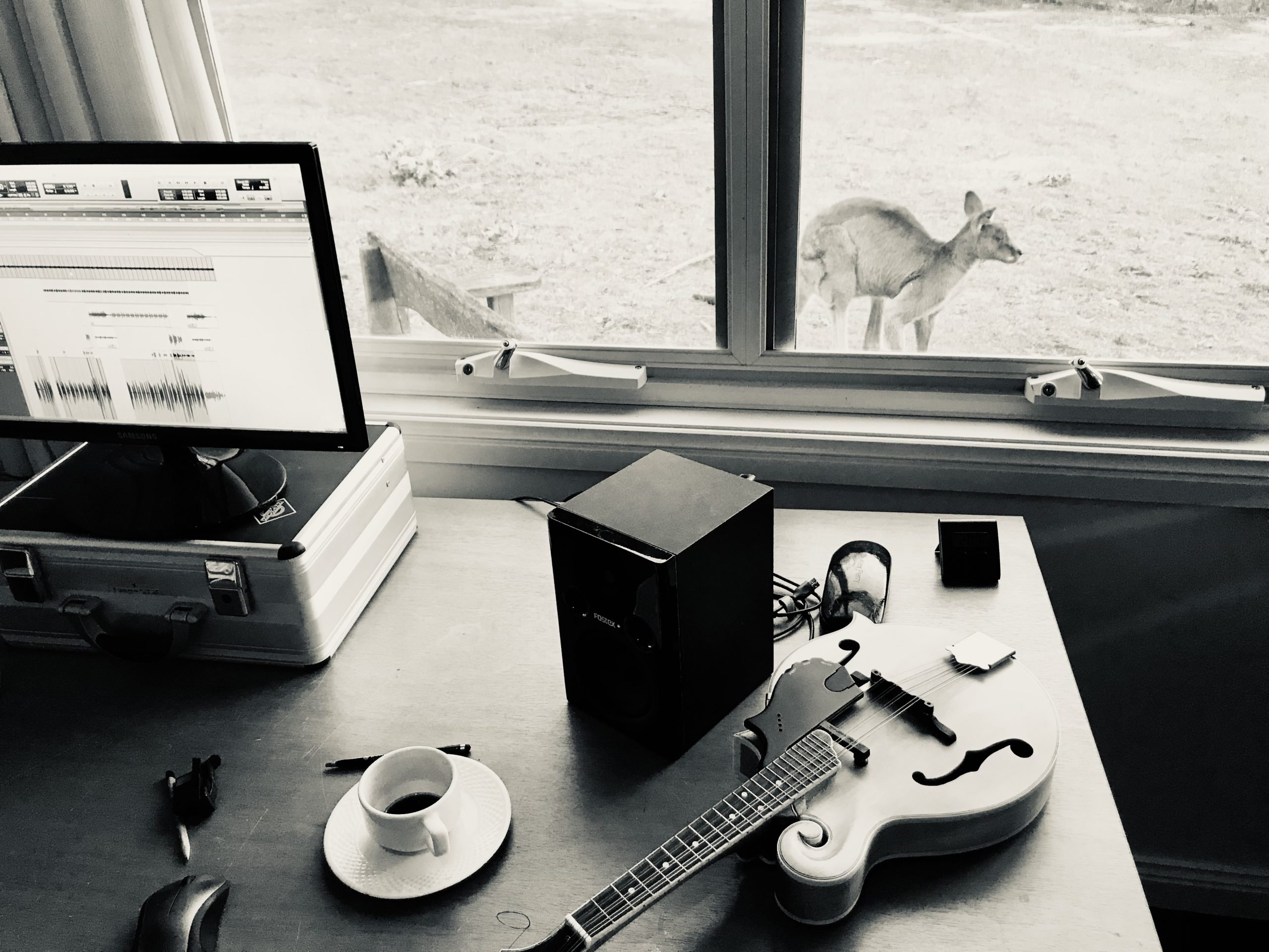 The first song I wanted to meet, without a doubt, was Post-Inauguration Blues. I had written it about six months earlier – on Jan 21, 2017 to be exact – the day after I watched Trump’s first inauguration. In a way, it became the thematic anchor for the rest of the residency. There was something about recording a sort of extended lament, a prophecy of collapse, in one of the most still places in Australia. The cottage, the bush, the ancient kangaroos became an emotional container for the rest of the songs: mini dramas of a lone wayfarer moving through a broken world. The future, following that inauguration, clearly filled me with unease, but it couldn’t touch me for seven days – held as I was by a place. At a kitchen table in a cottage on Dharawal and Dhurga land.