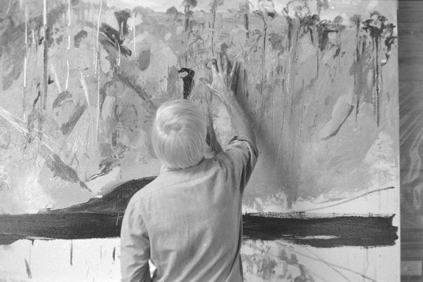 Robert Walker, Arthur Boyd, Bundanon studio, 1985. Black and white negative. Robert Walker archive, donated through the Australian Government’s Cultural Gifts Program by Louise Walker 2008, National Art Archive, Art Gallery of New South Wales. © Estate of Robert Walker/Copyright Agency. Image © Art Gallery of New South Wales.